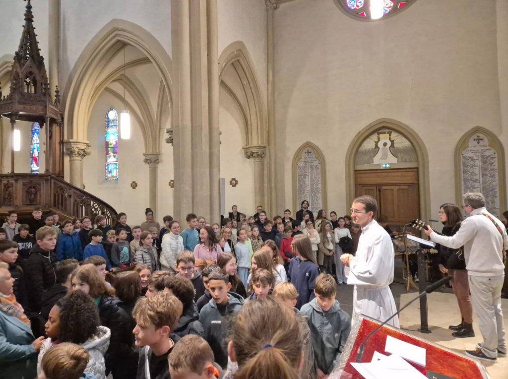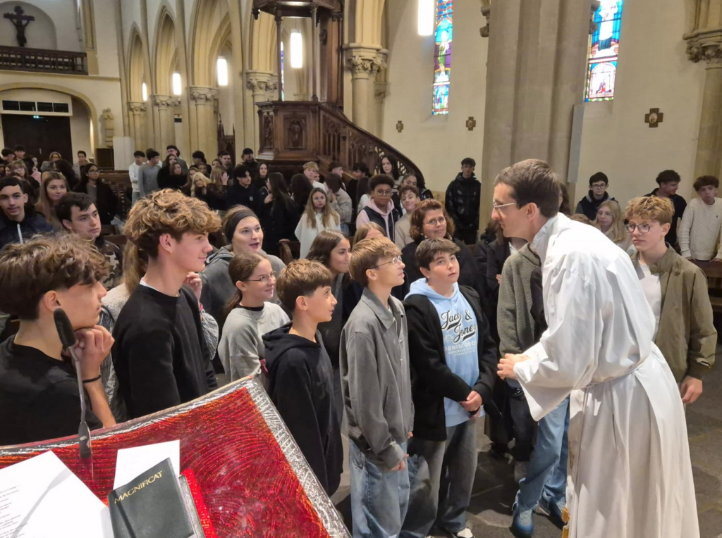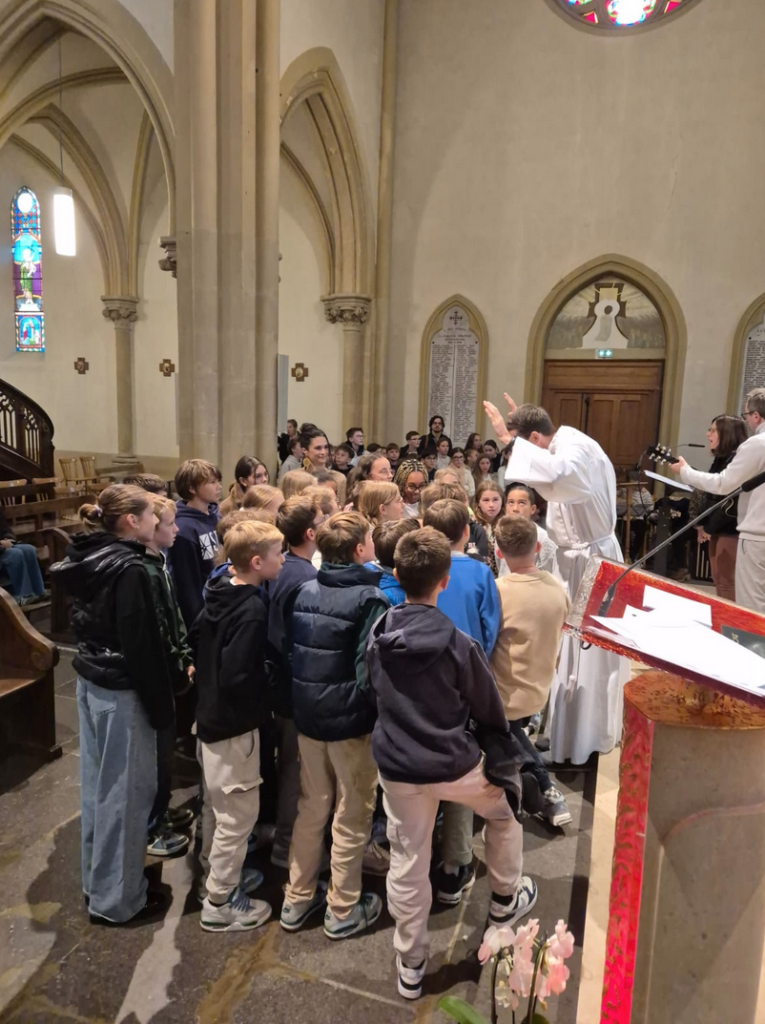 Le père Augustin a animé la célébration avec enthousiasme et passion, invitant chacun à entrer dans cette nouvelle année scolaire avec confiance et ouverture. La chorale de la pastorale, dirigée par Raphaël Jakuboski, a accompagné l’assemblée de ses chants, donnant à ce moment de partage une tonalité chaleureuse et vivante.