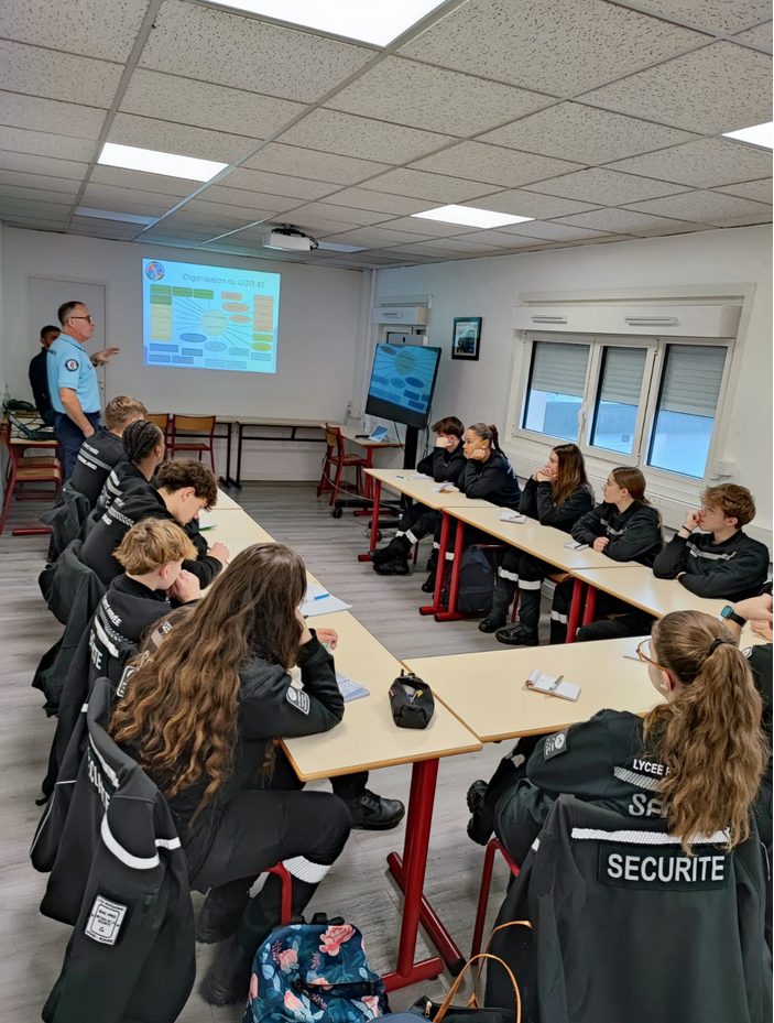 Le 28 novembre, les élèves de Première bac pro Métiers de la Sécurité ont été accueillis au Groupement de Gendarmerie Départementale de la Loire (GGD 42), à Saint-Étienne, pour une journée d’immersion au cœur des missions et des expertises de la gendarmerie nationale.