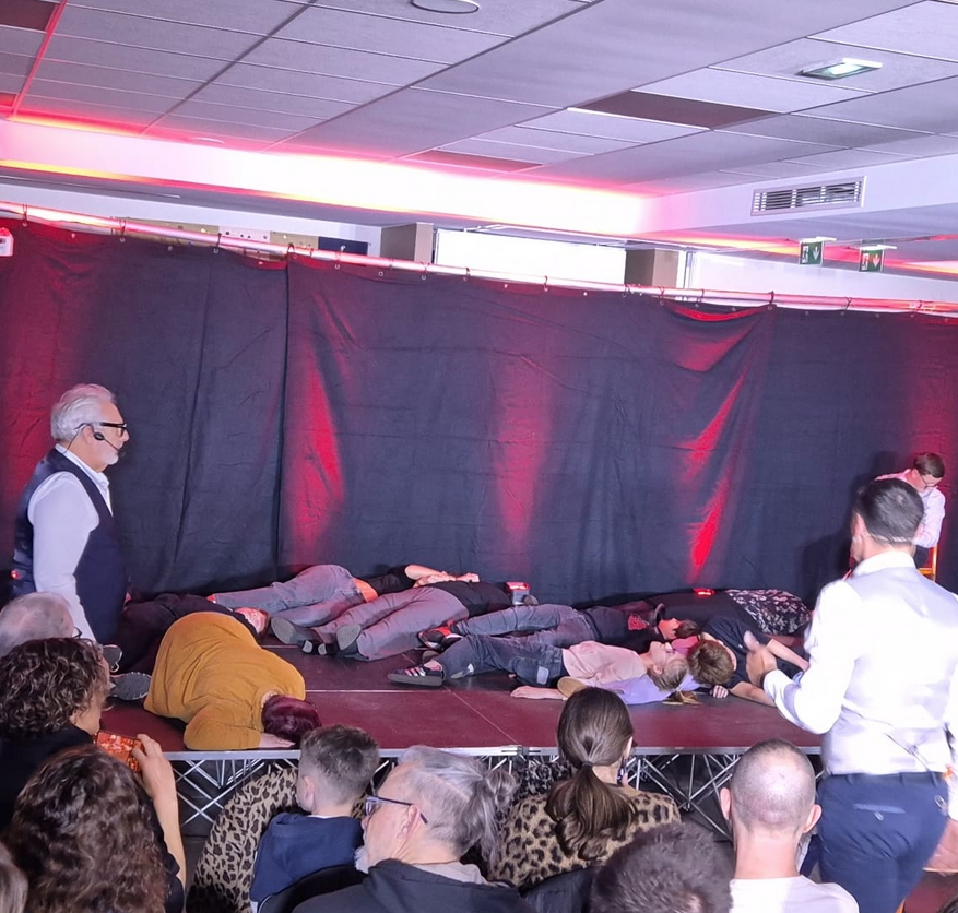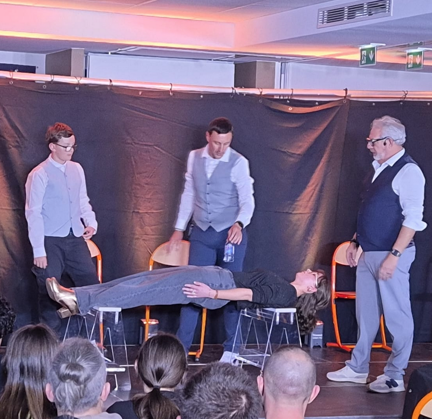Le 6 mars, notre groupe scolaire a accueilli un spectacle pas comme les autres : une soirée d’hypnose animée par Nicola Fly, fondateur d’InfiniHypnose. Devant un public nombreux et curieux, l’artiste a proposé une expérience aussi surprenante que divertissante, mêlant humour, participation du public et démonstrations d’hypnose spectaculaire.